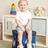 Das beliebte Lizenzmotiv SONIC bringt jedes Kinderzimmer zum Strahlen. Die Aufbewahrungsbox ist robust, stabil und ergibt aufgebaut einen komfortablen Hocker für Kinder und Erwachsene. Dank des platzsparenden Designs lässt sie sich bei Nichtgebrauch flach zusammenfalten und verstauen. Ideal fürs Kinderzimmer, Spielzimmer oder Bad und hilft, Ordnung zu halten.