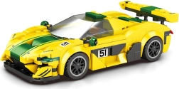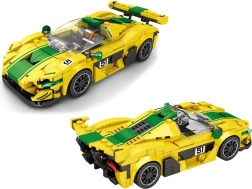 Das Modell überzeugt durch eine flache, rennsportliche Silhouette, breite Kotflügel und einen markanten Heckspoiler für einen authentischen Racing-Look. Der kontrastierende breite grüne Streifen betont die dynamischen Linien und verleiht dem Wagen einen aggressiven Charakter.