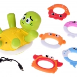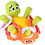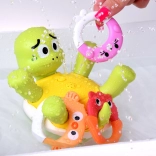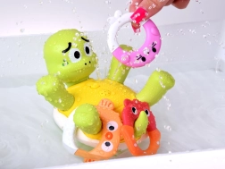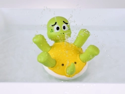 Setzt man das süße Schildkröten-Baby ins Wasser, beginnt es feine Wasserstrahlen zu sprühen, die Kinder faszinieren und ihre Wassergewöhnung fördern. Enthalten sind auswechselbare, farbige Scheiben mit verschiedenen Mustern, die das Aussehen des Spielzeugs verändern und die Aufmerksamkeit der Kinder beim Baden aufrechterhalten.