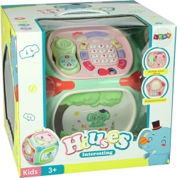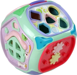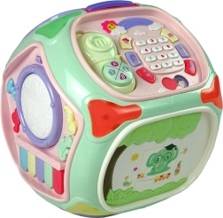 Dieser farbenfrohe interaktive Würfel in Hausform vereint mehrere Lernspiele in einem Spielzeug. Jede Seite bietet eine andere Aktivität, die das Kind zum Entdecken motiviert und seine Sinne sowie Fähigkeiten entwickelt. Licht- und Soundeffekte stimulieren Gehör und Sehsinn, während mechanische Elemente die Augen-Hand-Koordination trainieren.