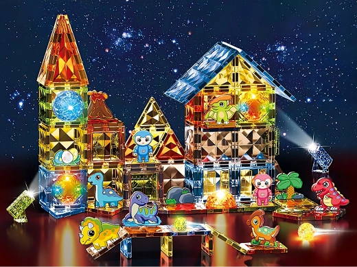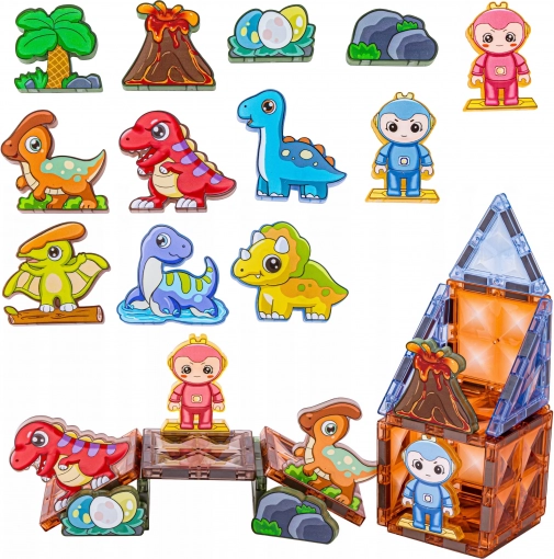 Erschaffen Sie gemeinsam eine einzigartige prähistorische Welt. Die magnetischen Teile lassen sich leicht verbinden, halten fest zusammen und leuchten eindrucksvoll im Dunkeln, was dem Bauen eine neue Dimension verleiht. Kinder errichten Gehege, Vulkane und Dinosaurier-Unterschlüpfe und entwickeln beim Spielen ganz natürlich räumliche Vorstellungskraft und logisches Denken.