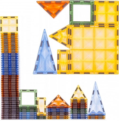 - 124 Teile inklusive verschiedener Formen (Quadrate, Dreiecke, Fenster, Dächer)