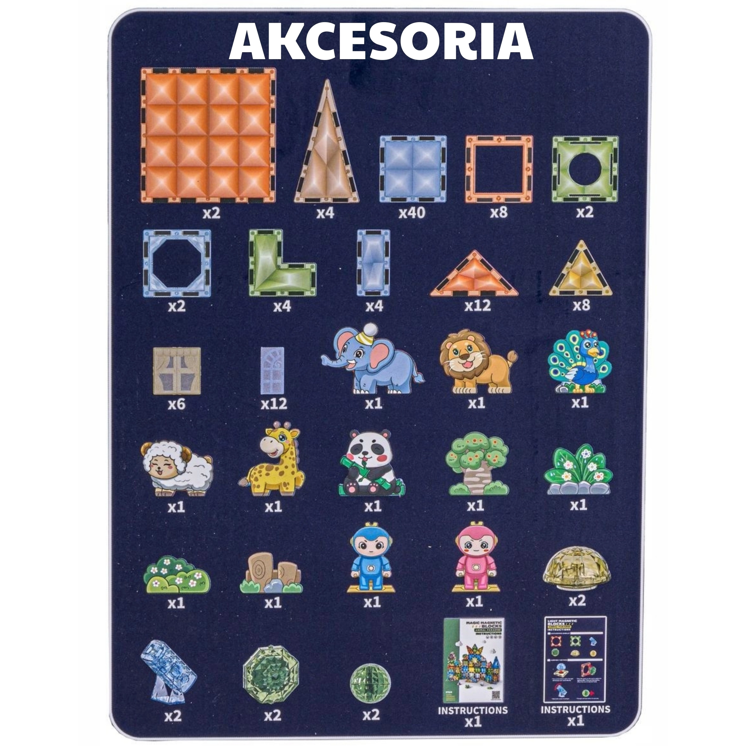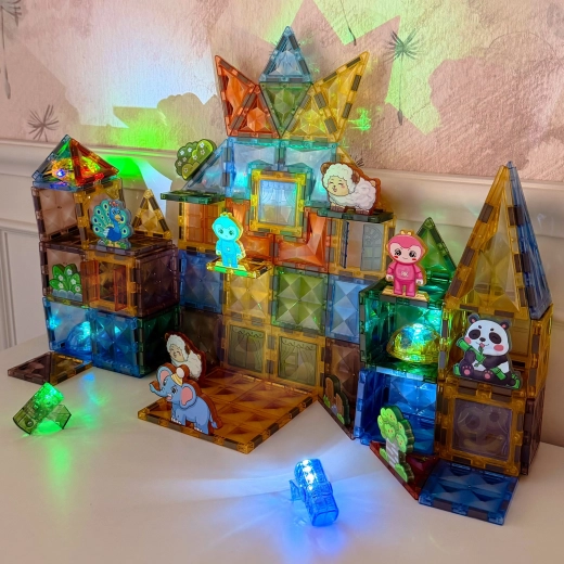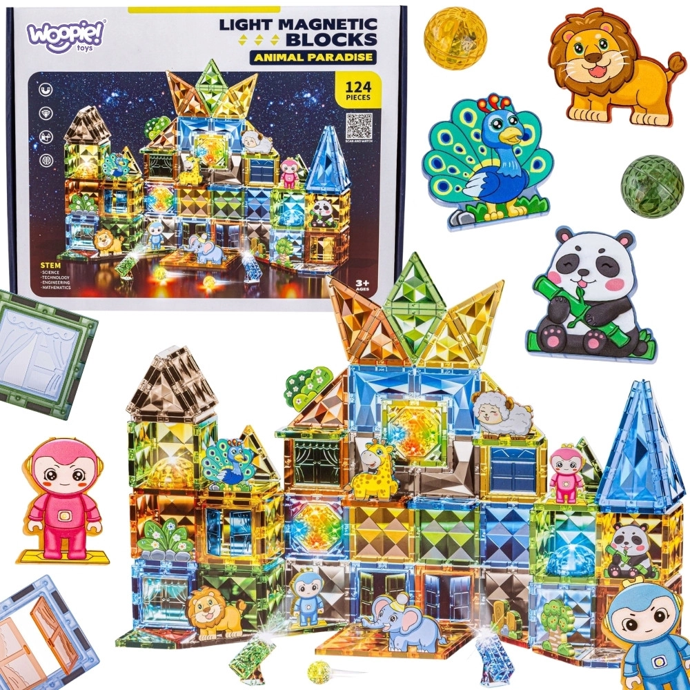 Das magnetische Set Woopie 3D Tierwelt bietet 124 Teile für endloses Bauen – von Zäunen und Gehegen bis hin zu ganzen Tierkönigreichen. Leuchtende Komponenten verleihen jedem Modell einen beeindruckenden Effekt und verwandeln das Spiel in ein abendliches Abenteuer. Starke Magnete gewährleisten Stabilität und einfaches Verbinden, auch für kleinere Kinder.