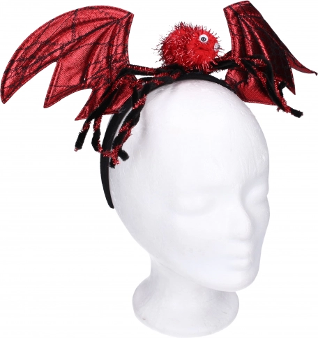 Karneval-Haarreif mit Ohren und Spinne. Leichtes und bequemes Accessoire für Halloween und Maskenball. 4 Farben: Rot, Orange, Lila, Schwarz.