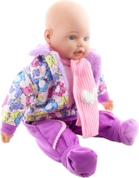 Diese große Puppe – Baby Mädchen – erfreut jedes Kind, das Rollenspiele rund um die Familie liebt. Dank des weichen Körpers ist sie ideal zum Tragen und Kuscheln, während Kopf und Enden der Gliedmaßen aus Kunststoff der Puppe ein realistisches Aussehen verleihen. Die Kleidung lässt sich leicht aus- und anziehen, was die Feinmotorik und Selbstständigkeit der Kinder fördert.