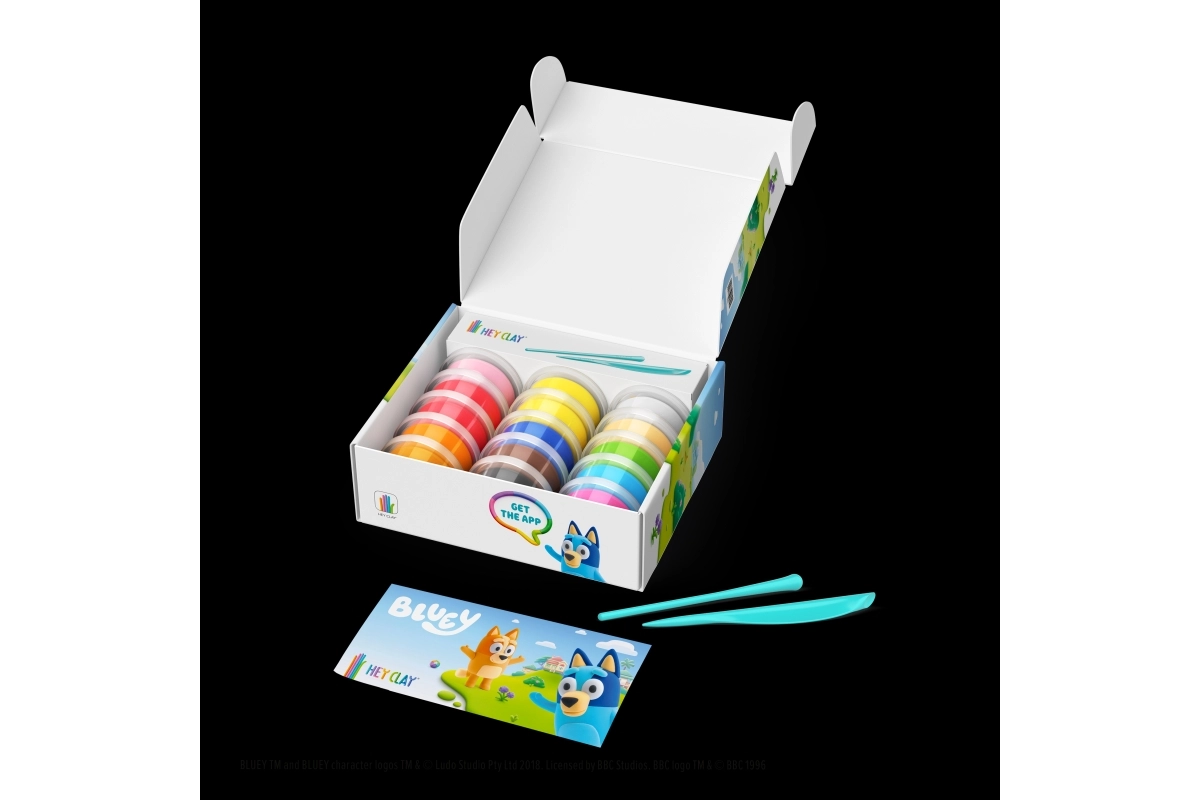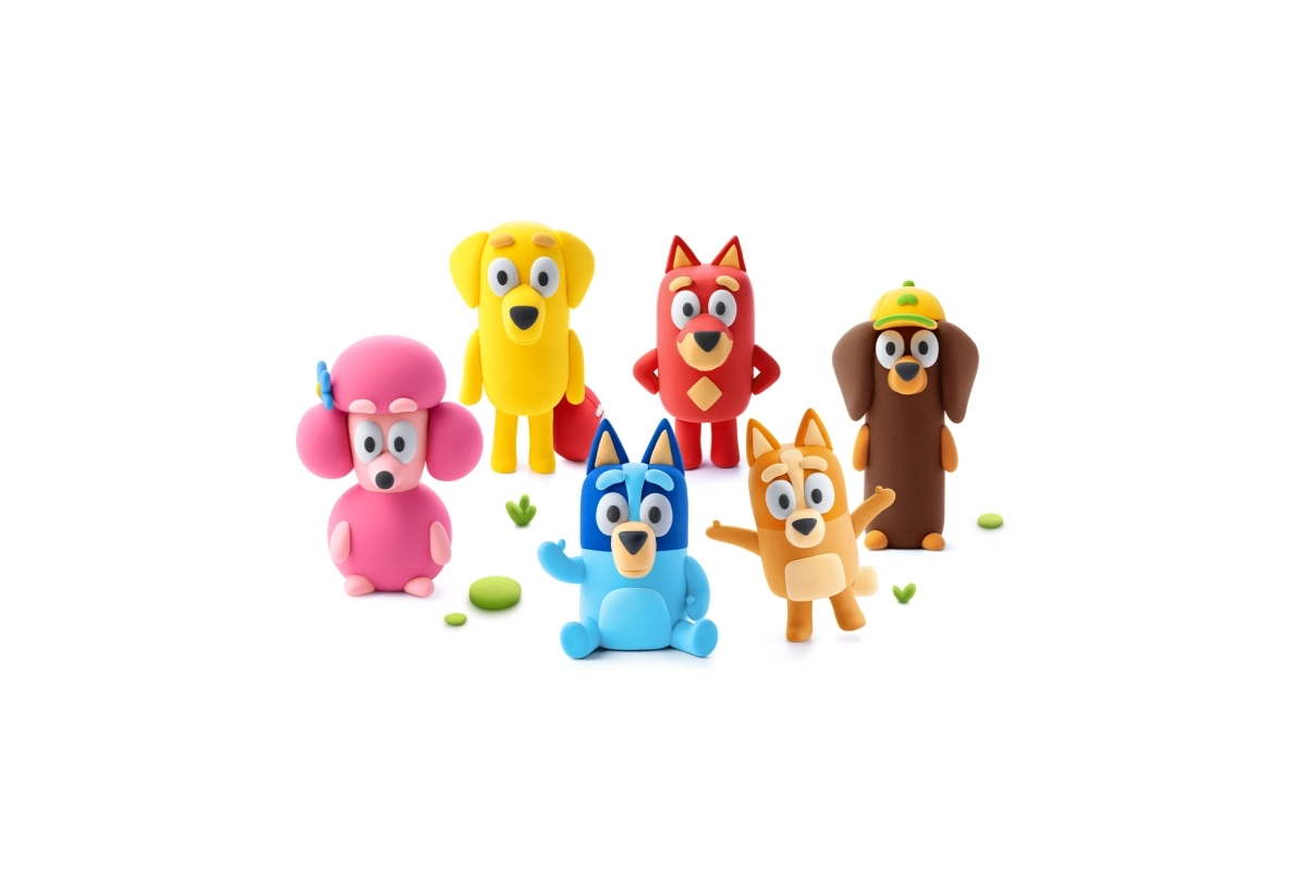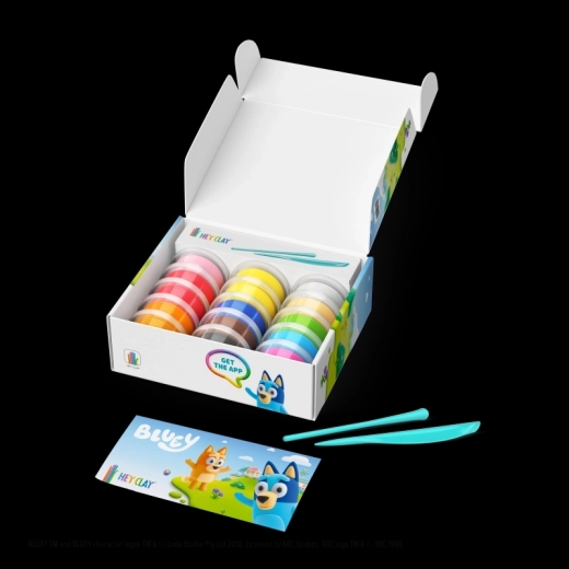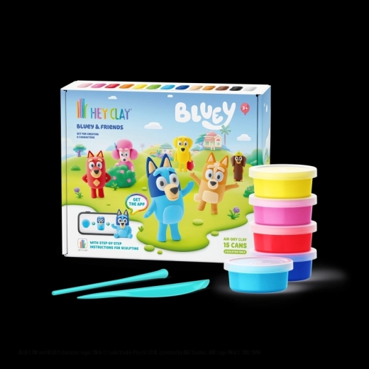 Das Set HEY CLAY Bluey und Freunde bietet Kindern einen unterhaltsamen Weg vom Gestalten bis zum Spielen. Dank der intuitiven App mit Schritt-für-Schritt-Anleitungen können Kinder alle Lieblingscharaktere aus der Serie BLUEY ganz leicht nachmodellieren – von der energiegeladenen Bluey über die fröhliche Bingo bis zum neugierigen Snickers. Die leichte, samtige Knetmasse lässt sich leicht formen, klebt nicht und ist nach dem Trocknen stabil und widerstandsfähig.