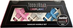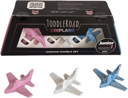 Toddleroad Hangar Marble – Set aus 3 ergonomischen Silikonflugzeugen mit funktionaler Box