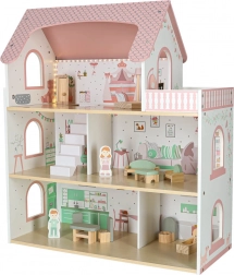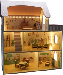 Das Puppenhaus Lulilo Peonio ist ein wunderschönes dreistöckiges Haus in Rosa-Mint-Kombination mit bedruckten Interieurs, Treppe und Balkon. Die warmen LED-Lichter sorgen abends für eine zauberhafte Stimmung und machen jedes Zimmer besonders gemütlich. Dank des umfangreichen Möbel-Sets richten Kinder Schlafzimmer, Wohnzimmer, Küche und Badezimmer im Handumdrehen ein.