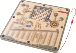 Diese magnetische Spieltafel aus Holz mit niedlichen Tieren ist ideal für das Spielen zu Hause, in Kitas und in Spielecken. Kinder führen die farbigen Kügelchen mit dem an einer Schnur befestigten Magnetstift durch gefräste Wege – sie setzen einfache Bilder nach 5 Vorlagen zusammen, ordnen die Kügelchen den richtigen Tieren zu und sortieren sie in Behälter vom kleinsten bis zum größten.