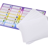 Enthalten sind ein angeschlossener Stylus/Pinsel, eine kompakte Basis zur einfachen Aufbewahrung sowie ein Set weißer Karten zum wiederholten Üben nach einfachen Vorlagen.