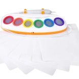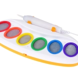 Die Basis mit farbigen Pads ermöglicht die schnelle Wahl des Farbtons. Einfach den Pinsel berühren und die Farbe aufs Papier übertragen – die Farben leuchten nach kurzer Zeit auf.