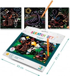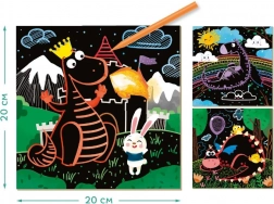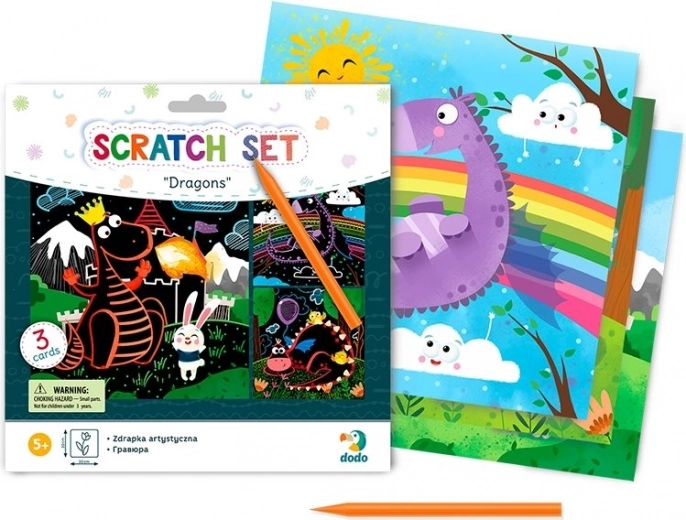 Mit diesem kreativen DODO-Set kratzen Kinder farbenfrohe Drachenmotive entlang vorgezeichneter Linien frei oder ganz nach eigener Fantasie. Jeder Strich enthüllt satte Farben, die aus einer einfachen Vorlage ein originelles Kunstwerk machen.