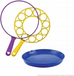 Ergonomische Griffe und die praktische Schale erleichtern das Eintauchen und Pusten. Die Lösung ist sofort einsatzbereit – einfach öffnen und schillernde Blasen erzeugen, die jedes Kinderspiel erhellen.