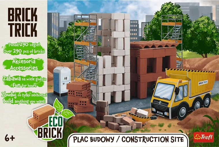 Bauen Sie Ihr eigenes Modell aus echten Lehmziegeln und Holz! Das Set Trefl Brick Trick Baustelle XL bietet 290 Teile, die Sie mit wasserlöslichem Kleber verbinden, mit Holzleisten ergänzen und mit... Mehr anzeigen
