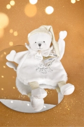 Dieser sanfte Plüschbär – als Schnuffeltuch – wurde entworfen, um Ihr Baby von den ersten Tagen an zu begleiten. Das weiche, angenehme Material stimuliert die Sinne, während die leichte, sichere Konstruktion sich von kleinen Händchen gut greifen lässt. Elegante Details wie das beige Mützchen, der weiße Kragen und die graue Markenstickerei verleihen dem Spielzeug einen zeitlosen Look.