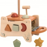 Dieses vielseitige Spielzeug vereint drei beliebte Aktivitäten in einem cleveren Set. Die Oberseite dient als Klopfbank mit zwei farbigen Kugeln und einem Hammer. An den Seiten finden Sie Öffnungen zum Einsetzen von Formen, die logisches Denken und Formerkennung fördern. Ebenfalls enthalten ist ein herausnehmbares Xylophon mit Schlägel für erste musikalische Experimente und das Entdecken von Klängen.