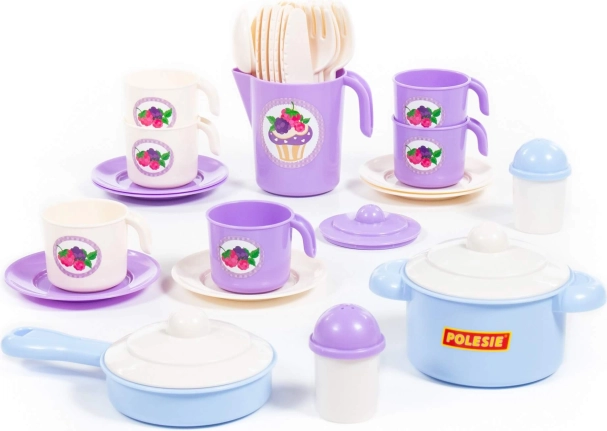 Kindergarten-Teeservice Nastěnka bietet eine ideale Möglichkeit, Kindern ein unvergessliches Spiel als Koch zu bieten. Das Set enthält 38 Teile, die für ein lustiges und sicheres Spielen entworfen sind.