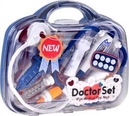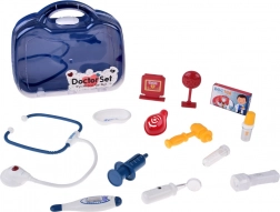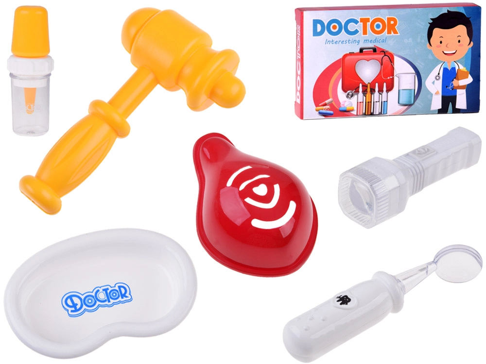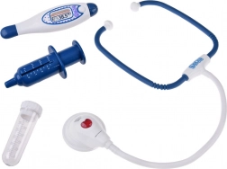 Enthalten sind unter anderem Spritze, Otoskop, Reflexhammer, Nierenschale, Reagenzgläser sowie eine DOCTOR-Karte – alles in kindgerechter, sicherer Ausführung.