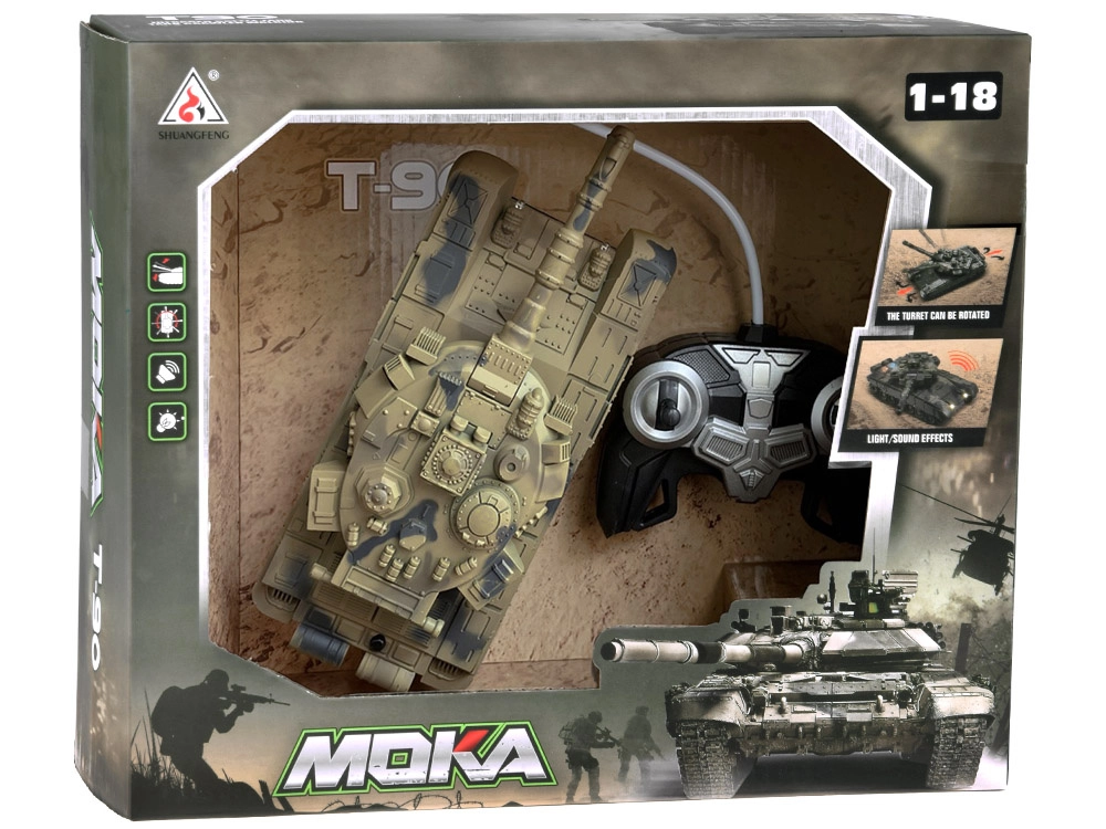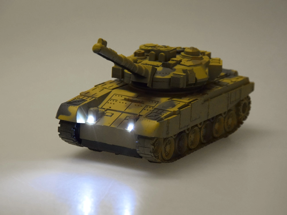 Schusseffekte und leuchtende Scheinwerfer schaffen die Atmosphäre einer echten Schlacht. Die Aktivierung erfolgt über die schwarze Taste auf der Rückseite des Panzers.