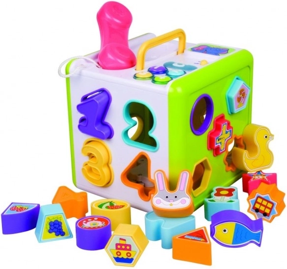 Dieser Einführer ist ideal für die kleinsten Kinder dank seiner bunten Farben und verschiedenen Formen zum Einfügen. Auf jeder Seite des Würfels befinden sich Öffnungen zum Einfügen von Formen, Buchstaben und Zahlen, was die Kinder motiviert, die Welt um sie herum spielerisch zu entdecken und zu lernen.