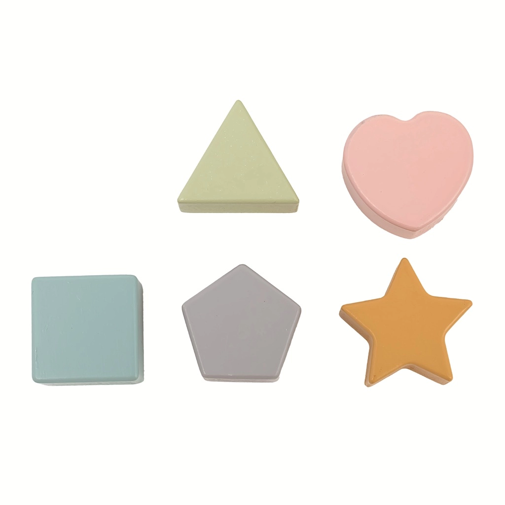 Fünf Einlegeformen in ansprechenden Farben helfen Kindern, Formen und Farben zu erkennen und trainieren zugleich einen präzisen Griff sowie das räumliche Wahrnehmen.