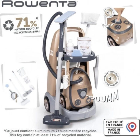 Dieser stylische Putzwagen mit ROWENTA-Lizenz macht das Aufräumen zuhause zum Lieblingsspiel. Kinder können mit dem realistischen Staubsauger mit echtem Sound Erwachsene nachahmen, während ergonomisch geformte Werkzeuge perfekt in Kinderhände passen. Die leichte und einfach zu bedienende Konstruktion ermöglicht eine sichere Handhabung auch für jüngere Kinder.