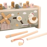 Dieses hochwertige Holzspielzeug mit Bauernhofmotiven bringt Kindern eine bunte Palette an Aktivitäten an einem Ort. Im Set finden Sie ein fröhliches Klopfspiel mit „Maulwürfen“ und einen Holzhammer zum Trainieren von Schlagkraft und Genauigkeit, eine magnetische Angel zum Fangen bunter Fischchen und ein farbiges Xylophon mit Schlägel zur Förderung des musikalischen Gehörs und Rhythmusgefühls (das Xylophon ist ein Spielzeug).