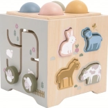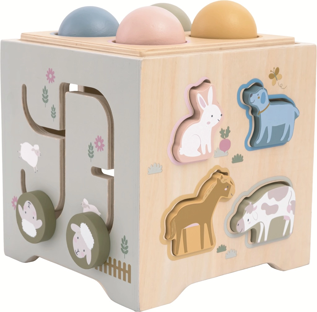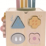 Dieser hochwertige hölzerne Motorikwürfel in zarten Pastellfarben mit niedlichen Tierillustrationen weckt die natürliche Neugier der Kinder. Dank 5 Spielseiten und austauschbaren Deckeln bietet er viele Wege zum Lernen und Entdecken – vom Sortieren von Formen und Tieren über Stecken und Drehen bis hin zu den ersten Zählübungen. Nach dem Spielen lassen sich alle Teile einfach im Inneren verstauen – so bleibt alles ordentlich.