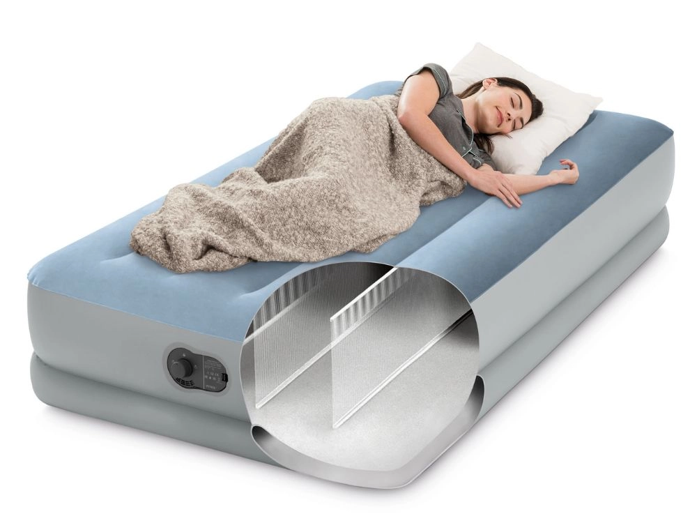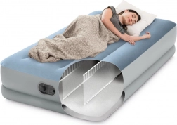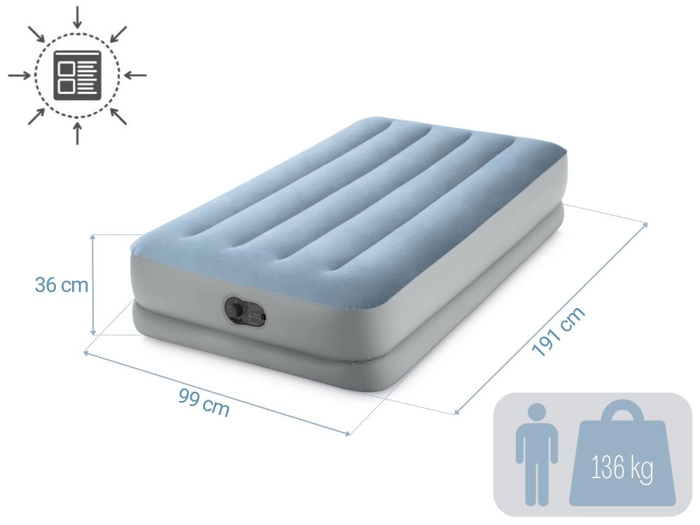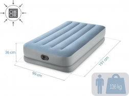 Suchen Sie eine bequeme Lösung für Gäste, Reisen oder die Hütte? Die Intex-Luftmatratze vereint Komfort, Stabilität und Mobilität. Die Veloursoberfläche ist angenehm anzufassen und verhindert das Verrutschen des Bettlakens, während verstärkte Fiber-Tech-Kammern und der Dura-Beam-Rahmen dem Bett Stabilität verleihen – ganz ohne unangenehmes Schaukeln.