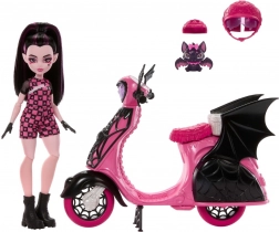 Puppe Draculaura, Roller, Figur der Fledermaus Graf Fabelhaft, 2 Helme (für Puppe und Haustier)