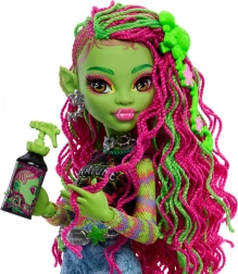 Entdecken Sie den pflanzlichen Star der Welt von MONSTER HIGH. Venus McFlytrap strahlt in einem farbigen Outfit mit Print, Jeansshorts und Plateauschuhen mit Lianen‑Motiv. Dank der gelenkigen Gliedmaßen lässt sich die Puppe leicht posieren und es können fantasievolle Szenen gestaltet werden, die Kinder lieben.
