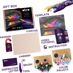 Im Lieferumfang ist alles enthalten, was Sie für den sofortigen Start benötigen – von der hochwertigen Leinwand aus Naturmaterial über Werkzeuge bis hin zur ausführlichen bebilderten Anleitung. Die Schwierigkeit 4/5 ist perfekt für alle, die ein anspruchsvolleres, aber gut machbares Projekt ausprobieren möchten.