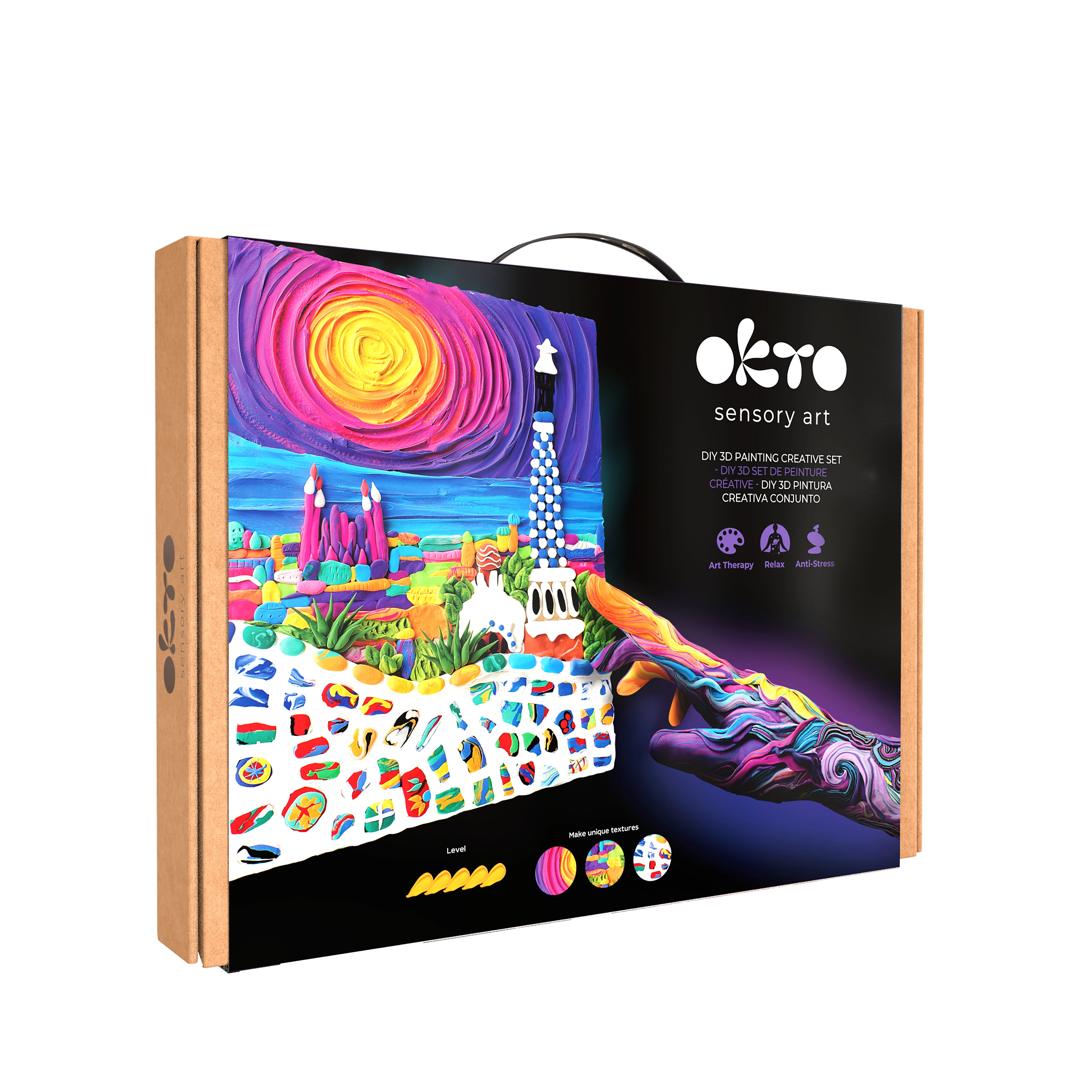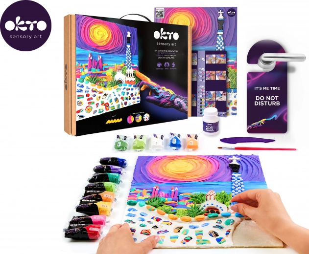 Dieses Premium-Kreativset von OKTO ermöglicht Ihnen, ein plastisches Bild mit einzigartiger Textur und verspielten Details zu schaffen, inspiriert von der Architektur Barcelonas. Dank der selbsthärtenden Modelliermasse erzielen Sie einen beeindruckenden 3D-Effekt, der nach dem Versiegeln mit Acryllack dauerhaft geschützt zur Geltung kommt.