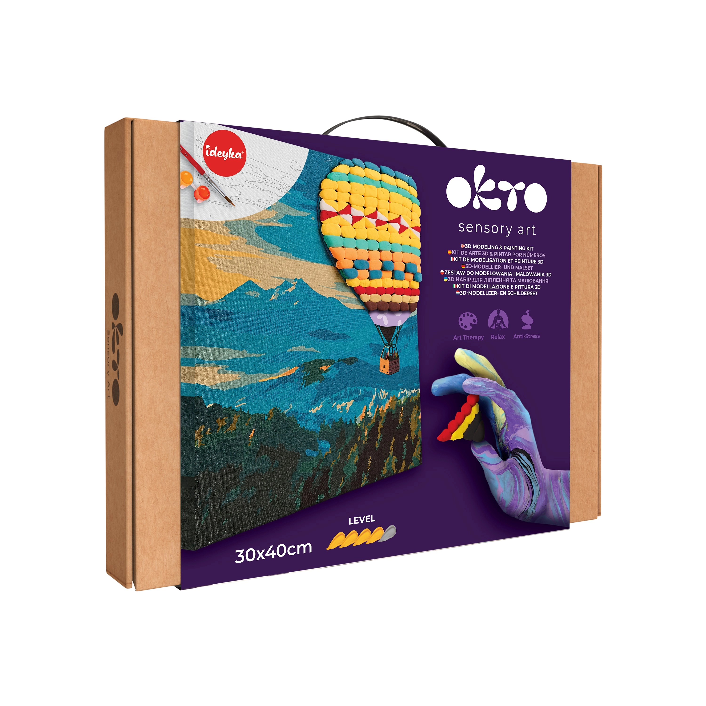 Entdecken Sie die Freude am Gestalten mit dem originellen Bild OKTO Hot Air Balloon Flight. Die Verbindung aus Malen nach Zahlen und dem Formen von 3D‑Elementen garantiert ein einzigartiges visuelles Ergebnis, das in jedem Interieur hervorsticht. Ideal für kreative Entspannung, die Förderung der Feinmotorik und als Geschenk.