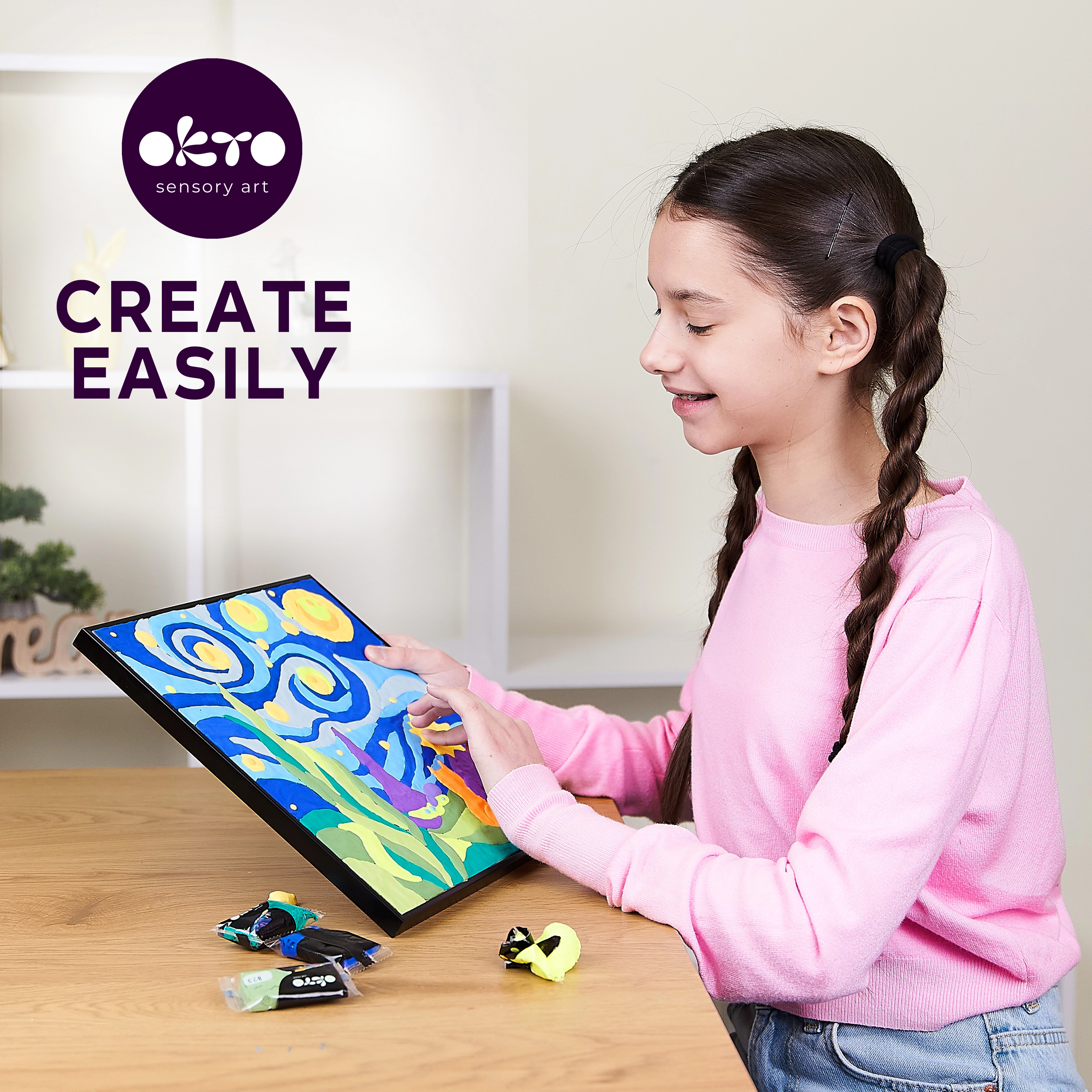 Im Set finden Sie alles, was Sie brauchen – Leinwand 29 × 29 cm, bebilderte Anleitung, Modellierwerkzeug und ein Set aus 14 farbigen Modelliermassen. Folgen Sie einfach den Zahlen, formen Sie die Masse und tragen Sie sie auf die markierten Felder auf. Das fertige Bild eignet sich perfekt als Dekoration fürs Kinderzimmer oder als originelles Geschenk.
