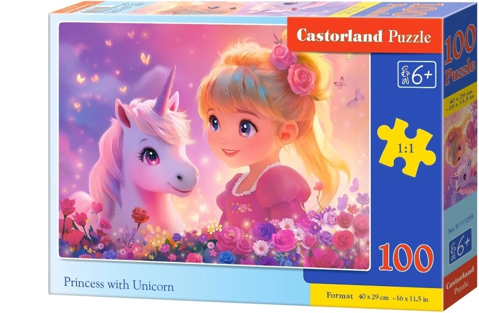 Entdecken Sie die magische Fantasiewelt mit dem hochwertigen Puzzle von CASTORLAND. Das Motiv Prinzessin mit Einhorn begeistert Kinder und Eltern und sorgt für langanhaltenden Puzzlespaß. Dank 100 stabiler Teile ist das Puzzle für jüngere Schulkinder und Einsteiger bestens geeignet.