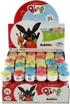 Die Seifenblasen BING 60 ml sind das ideale kleine Mitbringsel für den Alltag, Geburtstagsfeiern und Kinderpartys. Dank der beliebten Figuren aus der Serie BING erfreuen sie jeden kleinen Fan. Das einfache Pusten von Seifenblasen fördert Koordination, Kreativität und die Zeit an der frischen Luft.