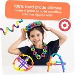 Der Silikon-Bausatz PLIP KIT verbindet spielerisch Flexibilität und einfaches Zusammenstecken. Die Teile aus lebensmittelechtem Silikon fühlen sich angenehm an, sind sicher und widerstandsfähig im Alltag. Kinder können vielfältige flexible Gebilde erschaffen, mit Formen experimentieren und die Hand-Auge-Koordination verbessern.