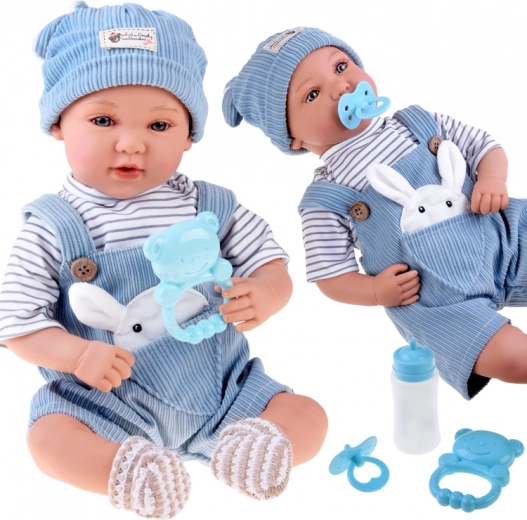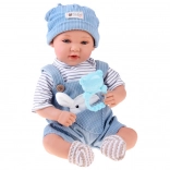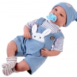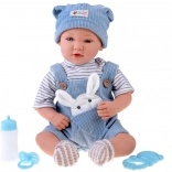 Interaktives Baby 46 cm in blauer Latzhose mit Zubehörset
