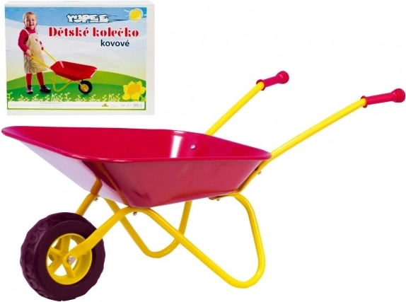 Die Kinder-Schubkarre Yupee aus widerstandsfähigem Blech bewältigt den täglichen Einsatz im Garten und im Sandkasten. Dank der ergonomischen Kunststoffgriffe liegt sie gut in kleinen Händen, und die stabile Konstruktion unterstützt beim Transport von Sand, Erde oder Spielzeug.