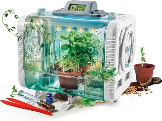 Dieses smarte Gewächshaus verbindet Spiel und Lernen. Kinder führen echte botanische Experimente durch, wählen 3 verschiedene Wachstumsmodi und erfahren Schritt für Schritt, was Pflanzen zum Keimen und Gedeihen benötigen. Integrierte Sensoren messen kontinuierlich die Schlüsselfaktoren und zeigen sie übersichtlich auf dem LCD-Display an.