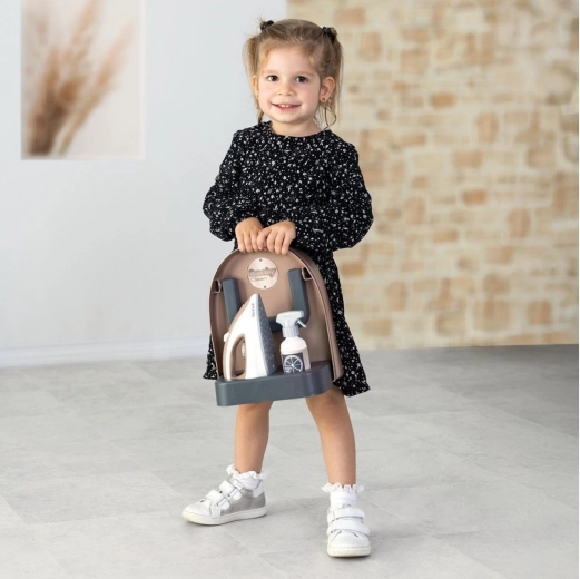 Die klappbare Konstruktion spart Platz, sodass das Set auch in kleinen Zimmern leicht verstaut werden kann. Realistische Elemente wie die Klick-Taste am Bügeleisen und der Sprühflakon steigern das Spielerlebnis.