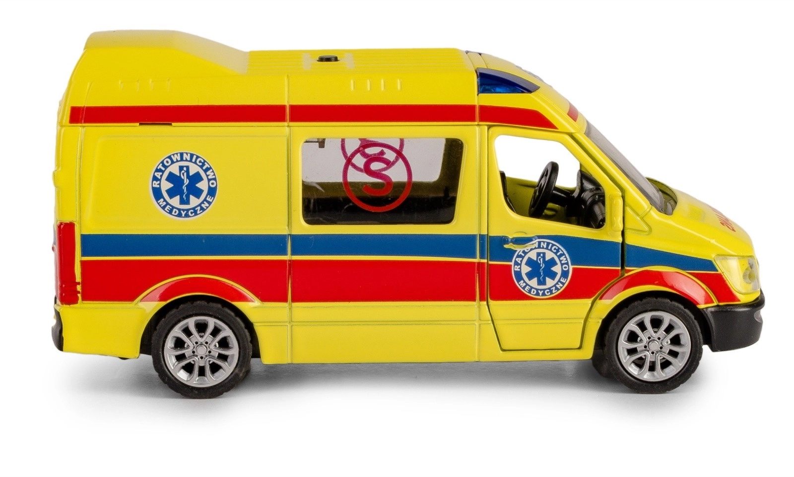 Entdecken Sie ein realistisches Modell eines Rettungsfahrzeugs, das Kinder wie auch Sammler begeistert. Dank der Metallausführung mit Kunststoffdetails wirkt der Krankenwagen glaubwürdig und robust, während die Pull-back-Funktion eine unterhaltsame Fahrt ganz ohne Batterien ermöglicht.
