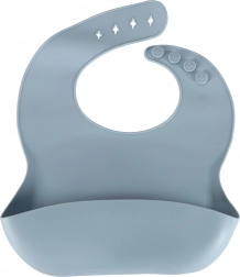 Weiches Silikonlätzchen mit verstellbarem Verschluss und breiter Auffangtasche hält Krümel und Flüssigkeiten zurück und die Kleidung sauber.