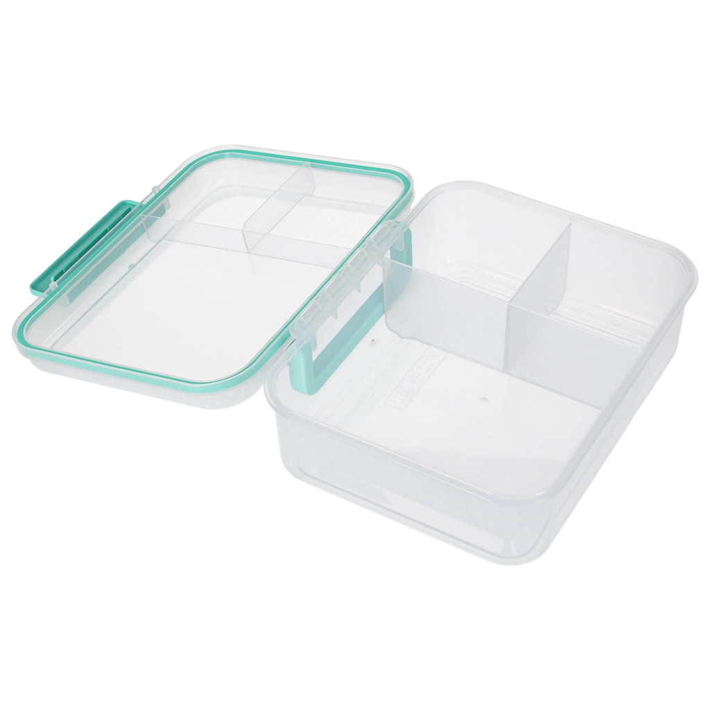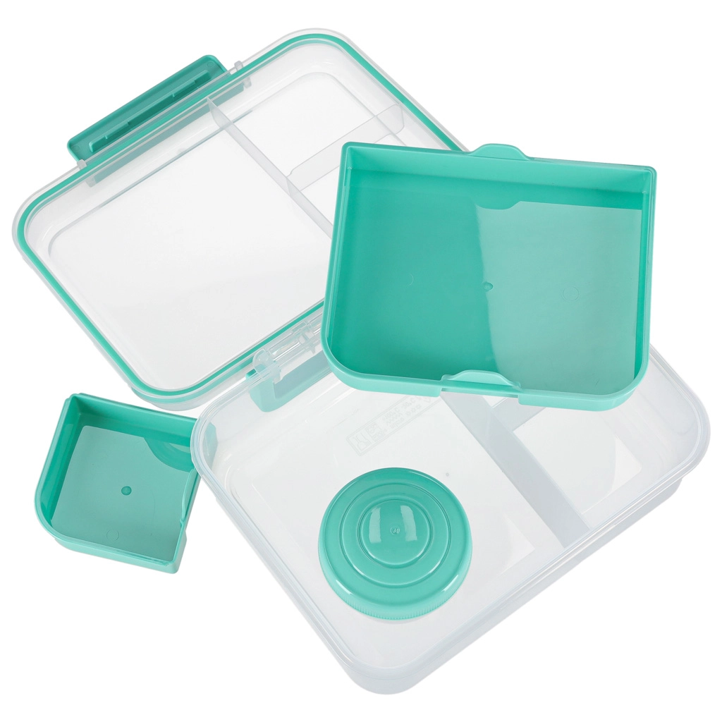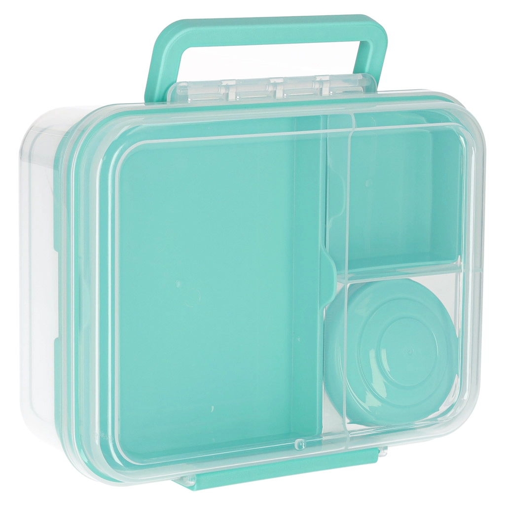 Die moderne Lunchbox in Mint bietet ein großes Volumen und eine clevere Aufteilung für eine gesunde Ernährung im Alltag. Modulare Einsätze und herausnehmbare Ebenen trennen Sandwiches, Salate, Obst und Snacks. Transparente Elemente erleichtern die schnelle Inhaltskontrolle, die leichte Konstruktion ist ideal zum Mitnehmen.