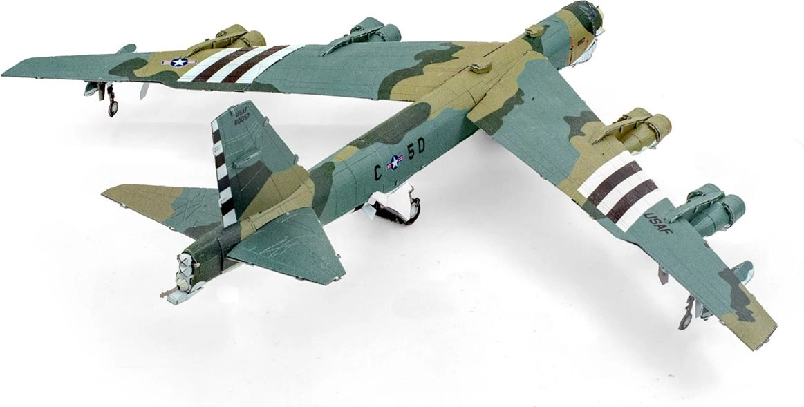 Lasergravierte Details verleihen dem B-52-Modell realistische Paneele, Beschriftungen und eine Oberflächenstruktur, die in jeder Vitrine hervorsticht.