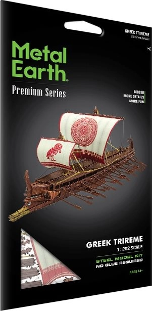 Entdecken Sie den Zauber der antiken Seefahrt mit dem Metall-3D-Modell einer griechischen Triere. Die METAL EARTH Premium Serie bietet dank Lasergravur extra feine Details, die Segel, Ruder und Decksausstattung hervorheben. Das Modell ist für alle gedacht, die präzises Arbeiten, Geschichte und designstarke Deko schätzen.