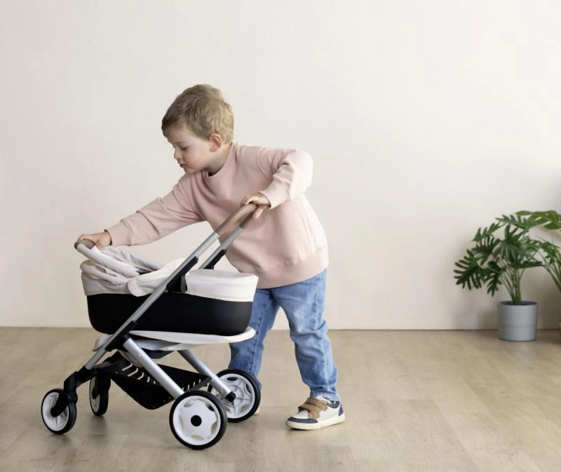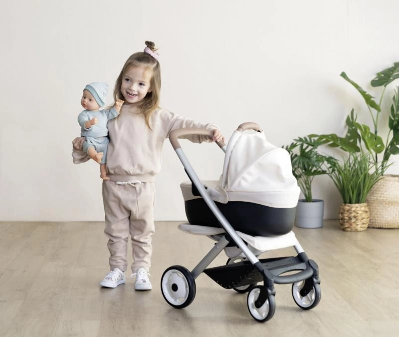 Entdecken Sie den modernen und vielseitigen Puppenwagen, der mit dem Spiel Ihres Kindes mitwächst. Dank der smarten Konstruktion bauen Sie ihn im Handumdrehen von der tiefen Wanne zur Sportversion um. Der obere Teil lässt sich leicht abnehmen, sodass das Baby in einem praktischen Tragekorb transportiert werden kann – ideal für unterwegs und das Kinderzimmer.