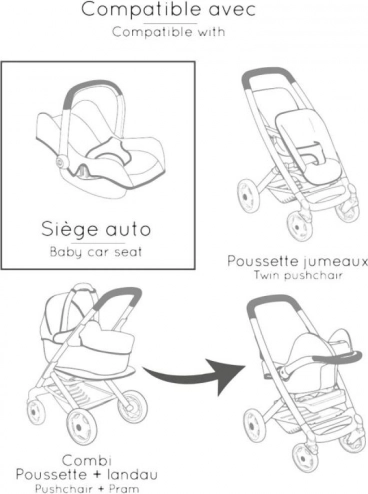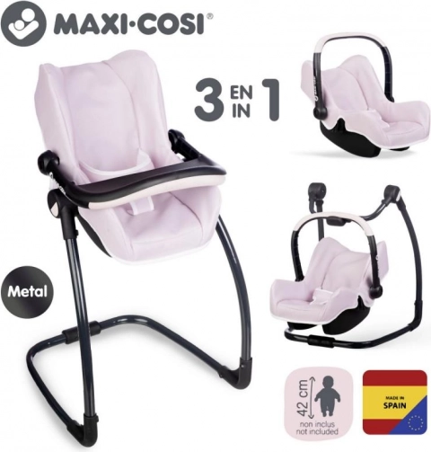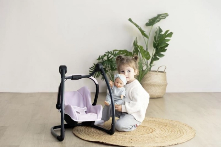 Dieses durchdachte 3-in-1-Set verwandelt die Puppenpflege in ein realistisches und unterhaltsames Spiel. Den Autositz hängen Sie einfach in den Rahmen ein, und schon wird daraus eine sanfte Schaukel. Durch Drehen der Konstruktion erhalten Sie einen hohen Hochstuhl mit Tablett – ideal zum Füttern von Puppen bis 42 cm. Die robuste Konstruktion und die weiche Polsterung sorgen für Komfort der Puppe und Stabilität beim täglichen Spielen.