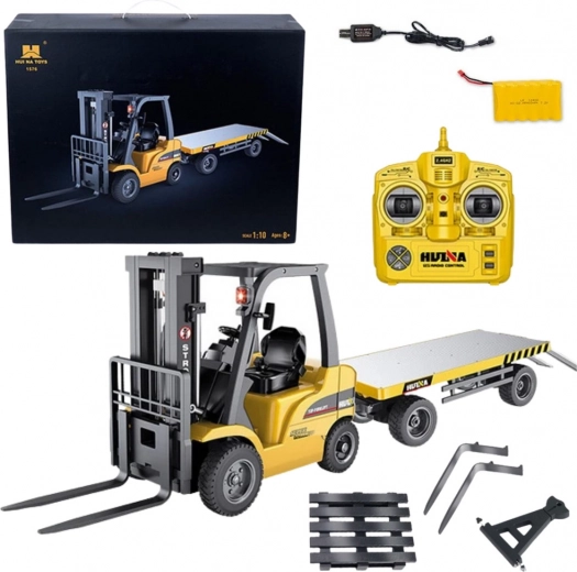 Werden Sie zum Lager-Operator zu Hause! Dieser detaillierte RC-Gabelstapler mit Anhänger bildet die echte Maschine naturgetreu nach. Dank der Fahrt vorwärts/rückwärts und seitwärts haben Sie die volle Kontrolle über die Bewegung, während verstellbare Gabeln realitätsnahes Be- und Entladen ermöglichen. Der beiliegende Anhänger erweitert die Spiel- und Logistikmöglichkeiten.